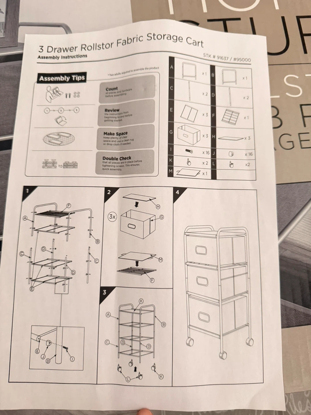 Home Stuff 3 Drawer Rollstor Fabric Storage Cart