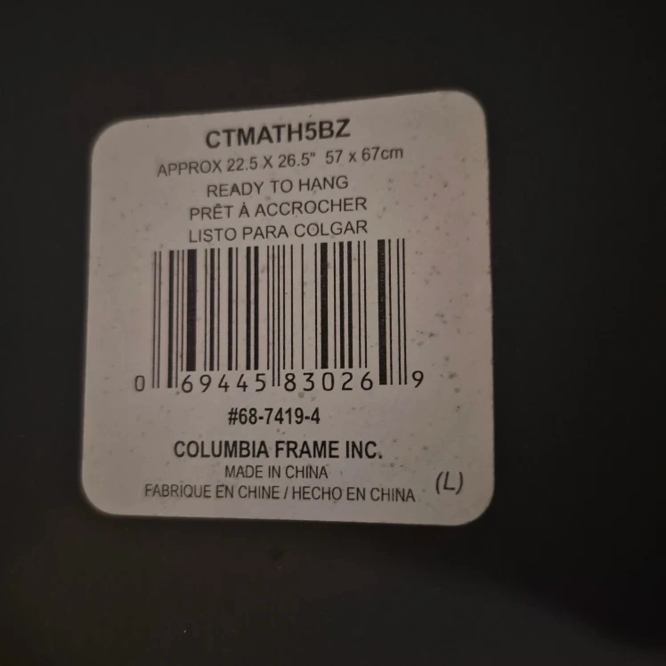 Selling a Columbia Frame Inc. mirror. It's ready to hang and measures approximately 22.5 x 26.5 inches (57 x 67 cm). It's a lovely piece to add to any room!