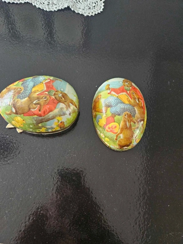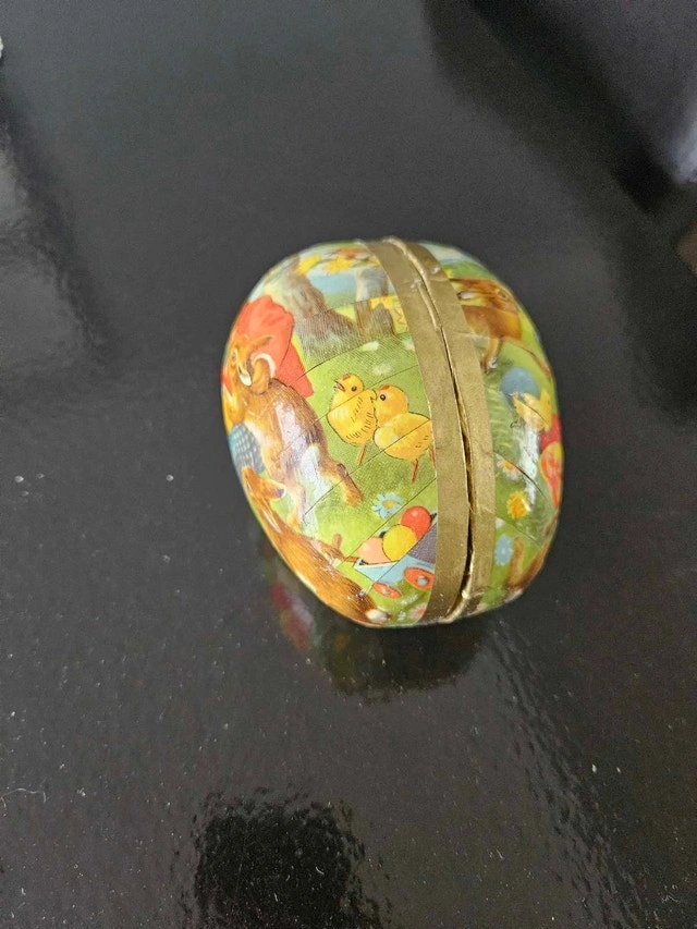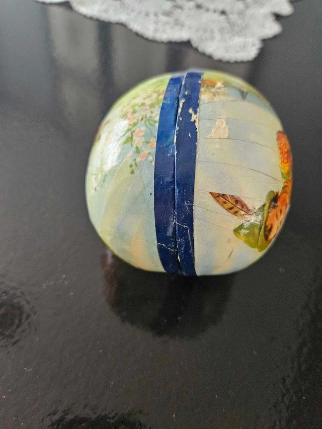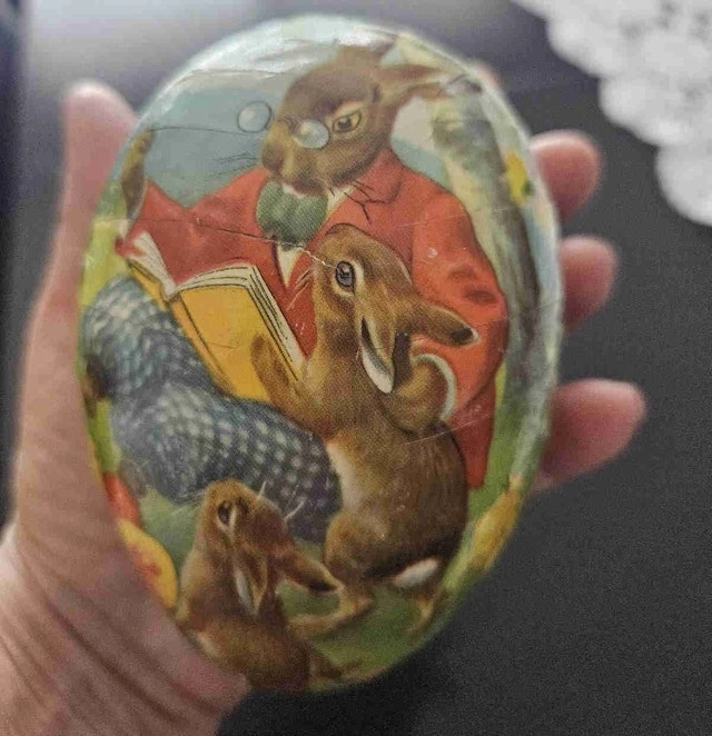 I'm offering a vintage German paper mache Easter egg, perfect for collectors! This charming egg features a delightful vintage illustrations and is in good used condition considering their age.
