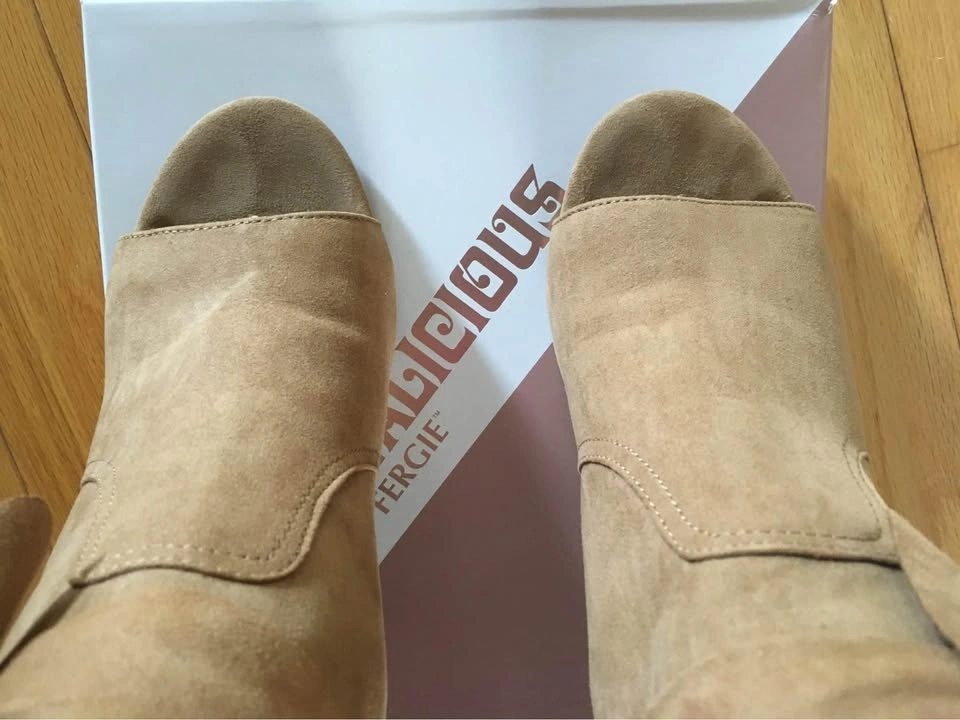 Fergalicious Suede Latte Booties/Sandals Size 8