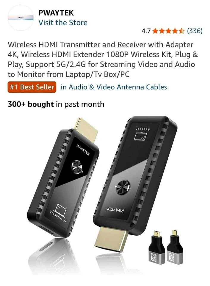 Wireless HDMI Transmitter and Receiver with Adapter 4K