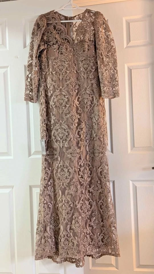 Taupe Lace Formal Gown New w Tags