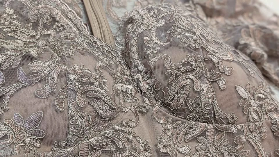 Taupe Lace Formal Gown New w Tags