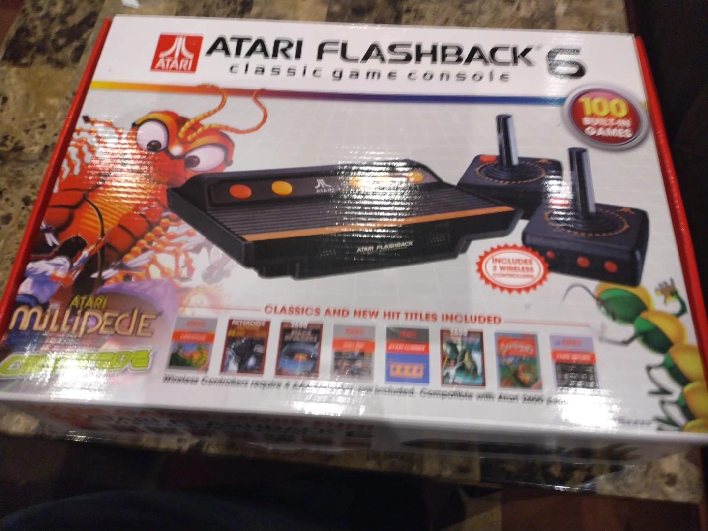 Atari Flashback 6 . Classic game console. Wireless Controllers require 4 AAA batteries, not included . Comparable with Atari 2600 peripherals