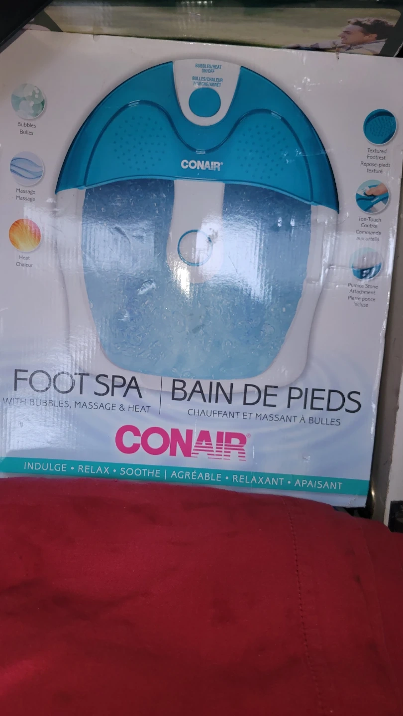 This Brand New Conair Foot Spa offers bubbles, massage, and heat functions. It comes with a textured footrest, toe-touch control, and a pumice stone attachment. Indulge in a relaxing foot soak at home!