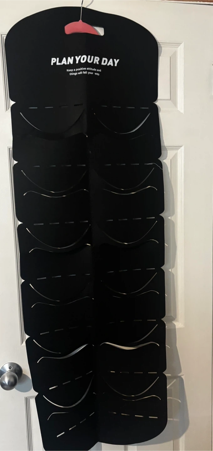 Many available new in bag. Black or white available. Handy hat organizer. Great for keeping your hats neat and tidy. Has 12 slots for all your baseball caps or other hats. Top says 'PLAN YOUR DAY Keep a positive attitude and things will fall your way.' Located on the south side of Edmonton close to Calgary Trail and 23ave.