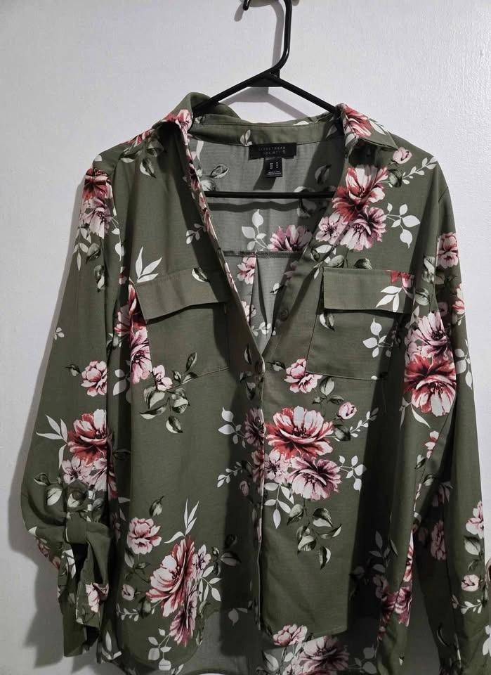 Both shirts are medium, loose fitting with sleeves that can be rolled up.