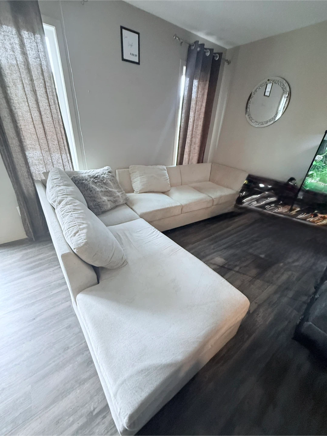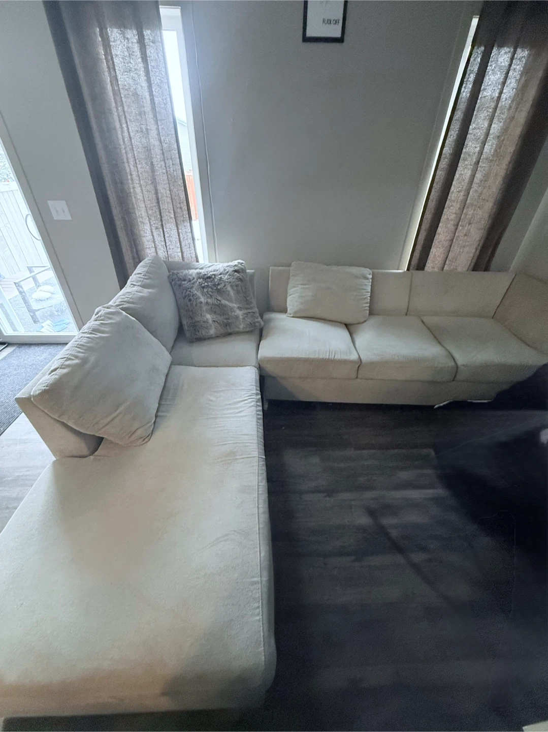 Buy & SellCream Sectional SofaCream Sectional Sofa$100Cream-coloured sectional sofa. Upholstered in a soft fabric. Includes toss cushions. Great for lounging!ConditionGoodWHERE TO MEETCheck LocationView MapSELLERSarahTamarack483 reviews3 chats·2 favorites·101 viewsSEND CHAT TO SELLERHi Sarah! I’m interested in your listing.Hi Sarah! I’m interested in your listing.Get the Karrot app to chatSign In to chat