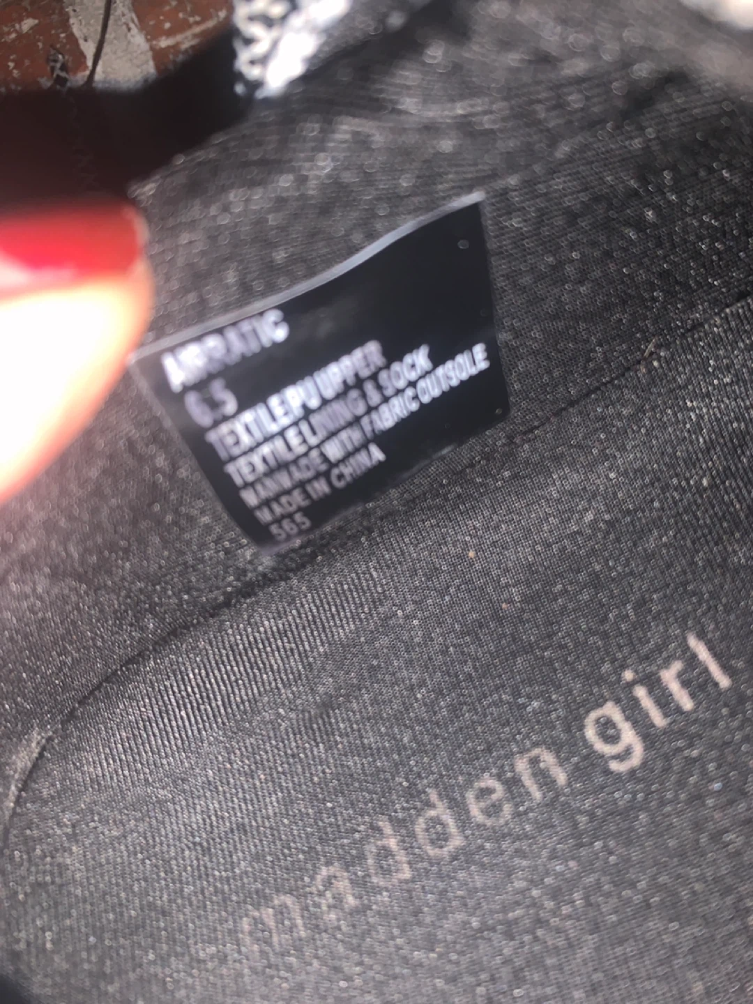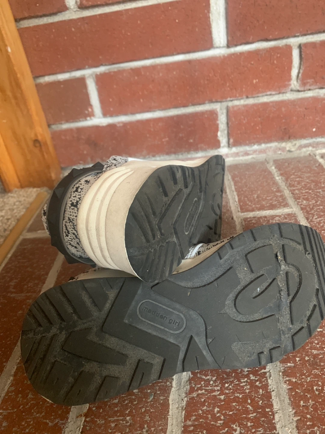 These Madden Girl sneakers feature a textile and PU upper with a sock lining. They are made with a fabric outsole. These are a size 6.5.