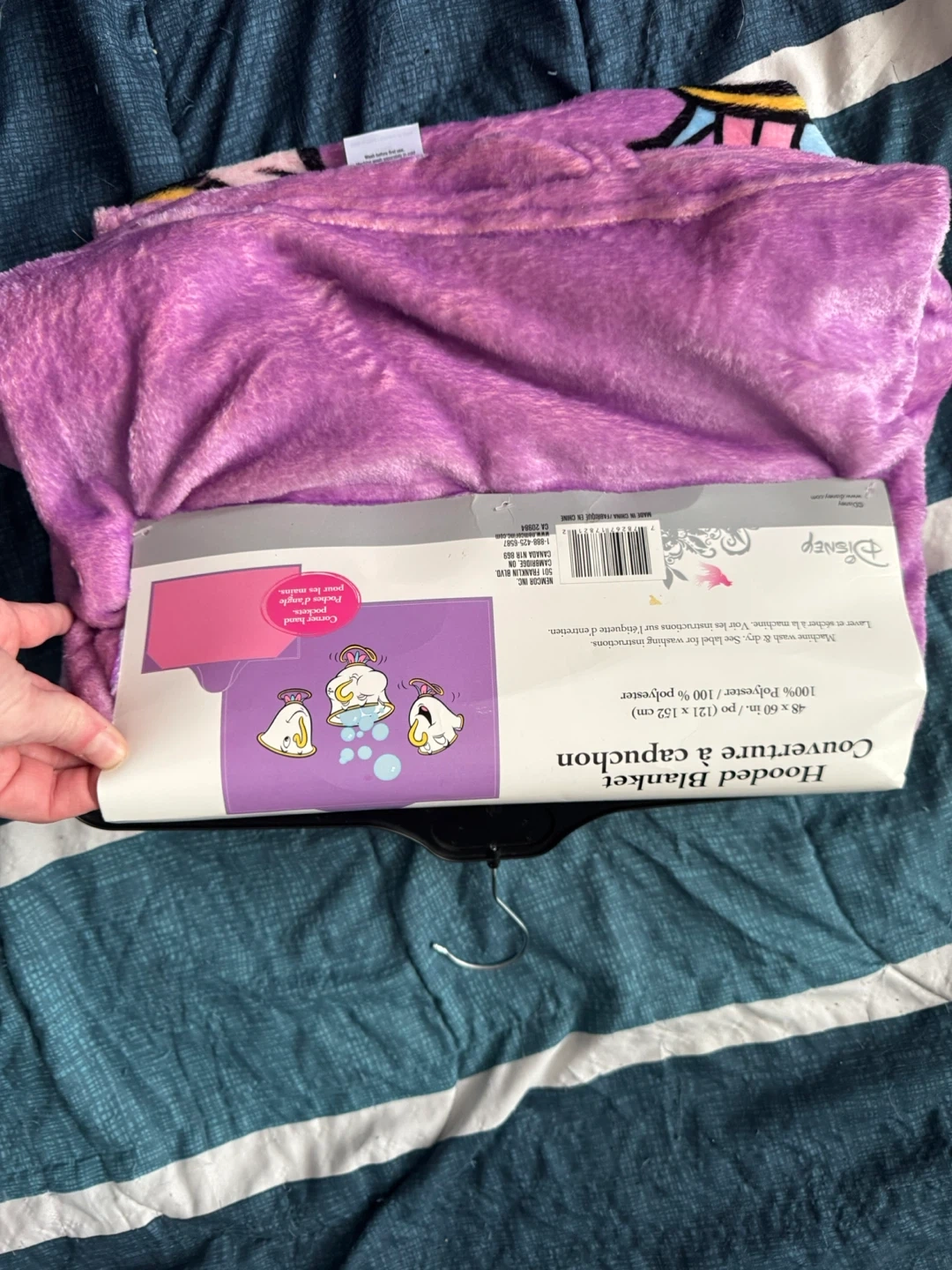 Super soft and cozy hooded blanket featuring a character design. Made from 100% polyester, it's perfect for cuddling up. Measures 40 x 50 inches.
