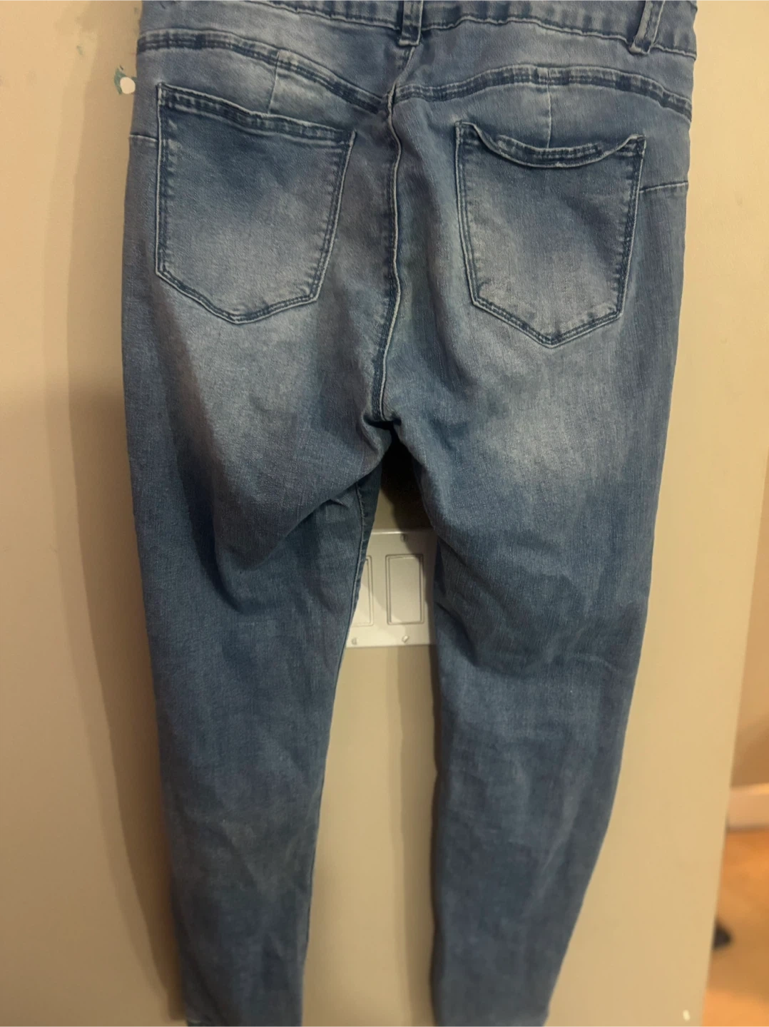 Selling a pair of Blue Notes jeans in size 32! These have a stylish distressed look with rips and tears. They're made of 70% cotton, 28% polyester, and 2% spandex, so they're comfy and have a bit of stretch.