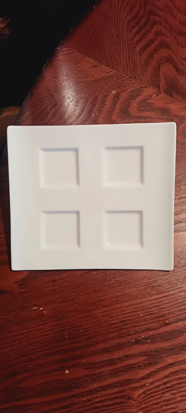 New !!! This white rectangular plate features four embossed compartments. It's made of ceramic material. This dish is perfect for serving appetizers or sushi π£ or snacks ! 8"Γ7". ( I have more of these plates). New !! ALL MY PRICES ARE NEGOTIABLE !!