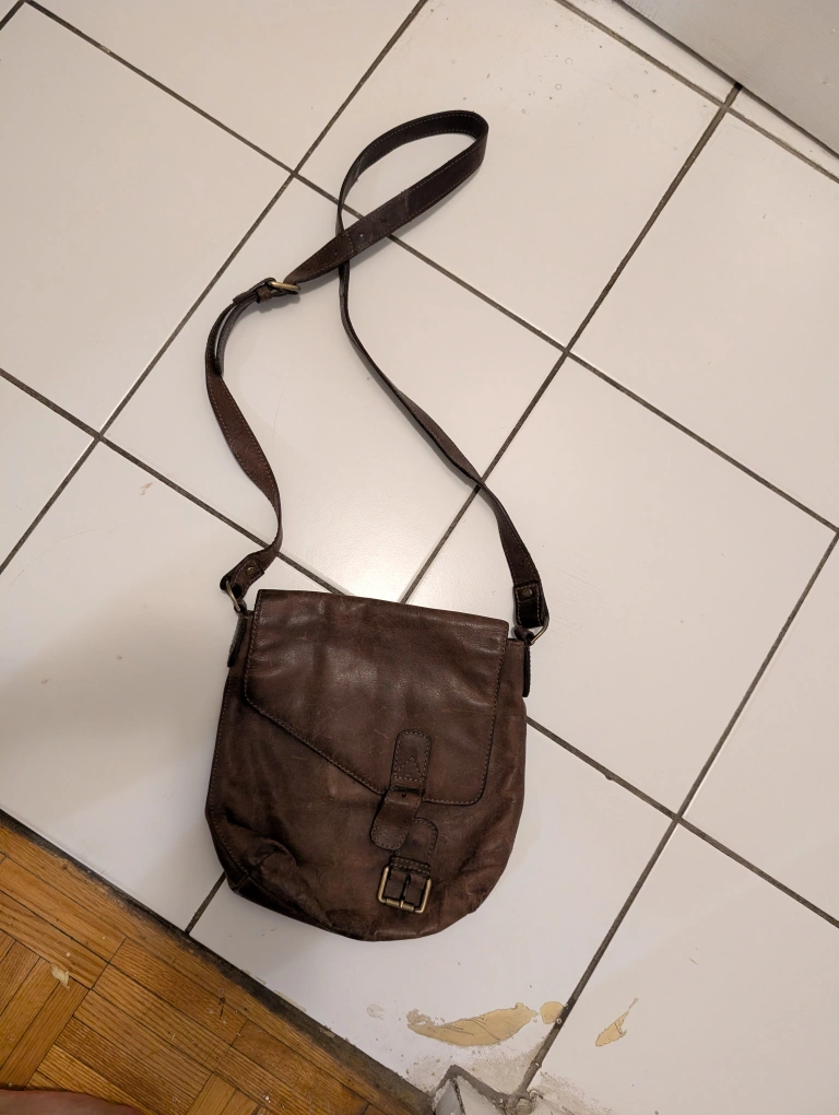 Selling a gently used brown leather crossbody bag. It has a classic design with a flap closure and buckle detail. Perfect for everyday use!