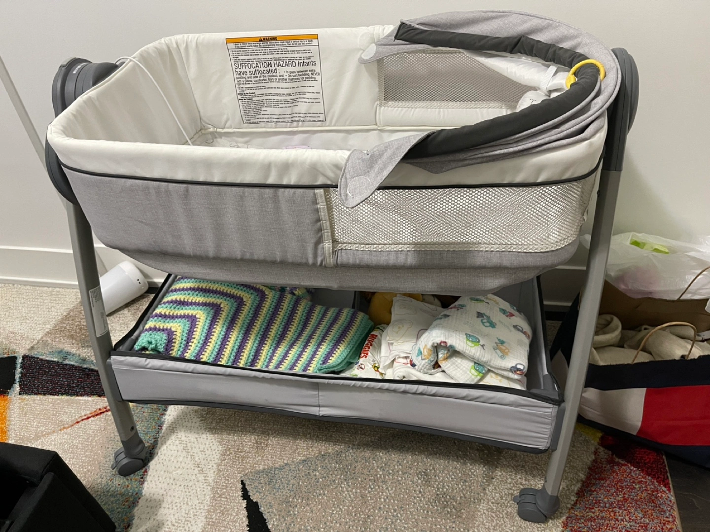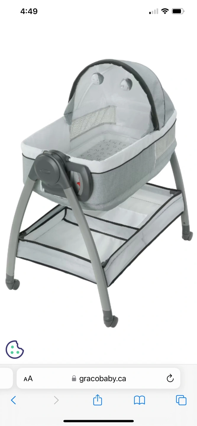 Dream Suite is a reversible bassinet and changer, all-in-one! Now parents can have a dedicated sleep and changing space for baby conveniently located in their room. The cozy bassinet soothes baby with 2-speed vibration, allows air flow and visibility with mesh sides, blocks light with the canopy, and entertains with soft toys. The changer features easy to wipe clean fabric and can be used up to 14 kg (30 lb) - even after baby no longer sleeps in the bassinet. The large storage basket keeps baby's essentials close by and the wheels make the bassinet easy to move to keep baby close by.