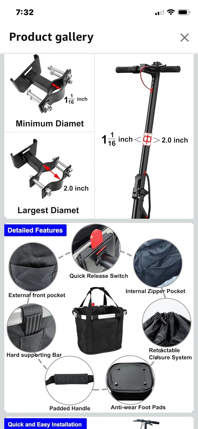 Adult Electric Scooter Baskets, Folding Bicycle Basket Front Storage Shrink Pocket Closure Canvas Waterproof Car Basket for Scooters and Bikes, for $35