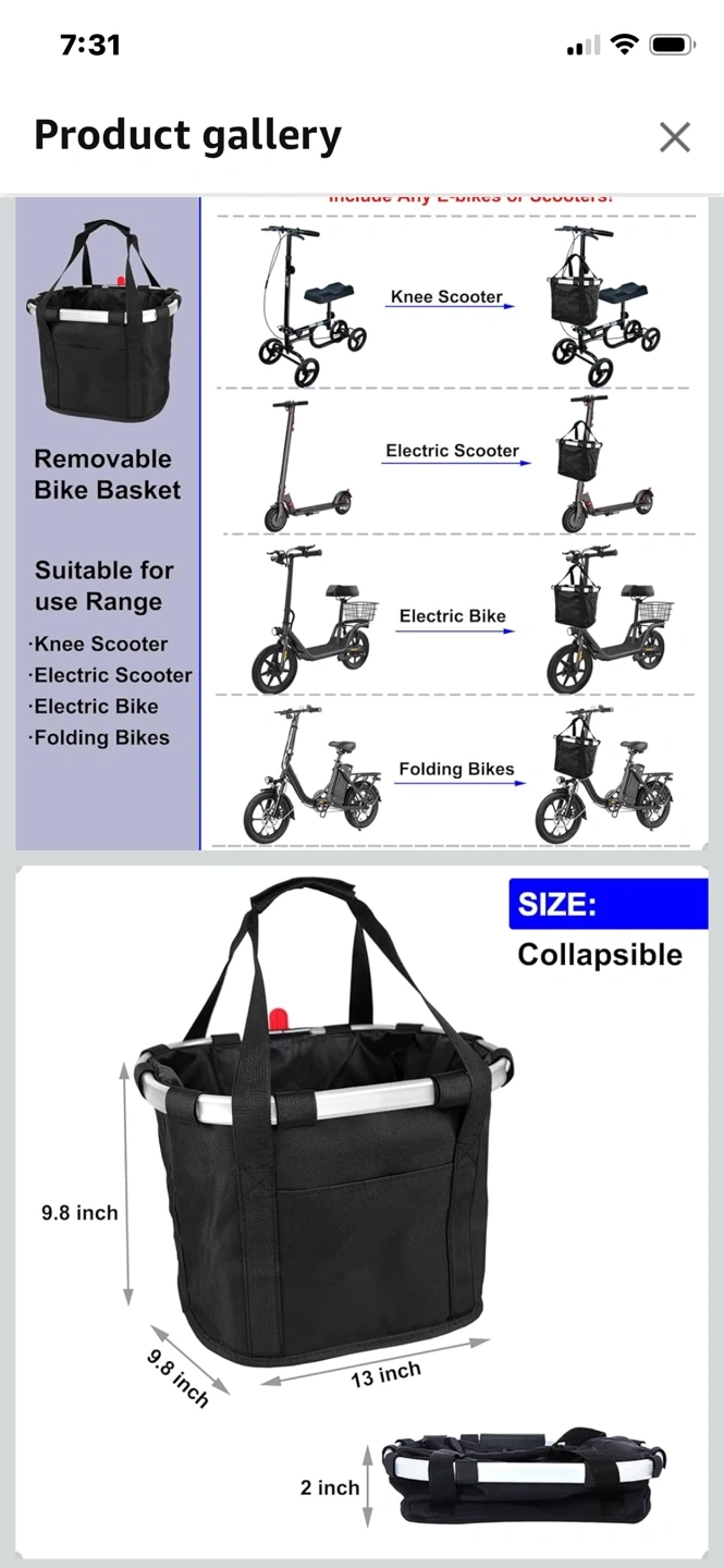 Adult Electric Scooter Baskets, Folding Bicycle Basket Front Storage Shrink Pocket Closure Canvas Waterproof Car Basket for Scooters and Bikes, for $35