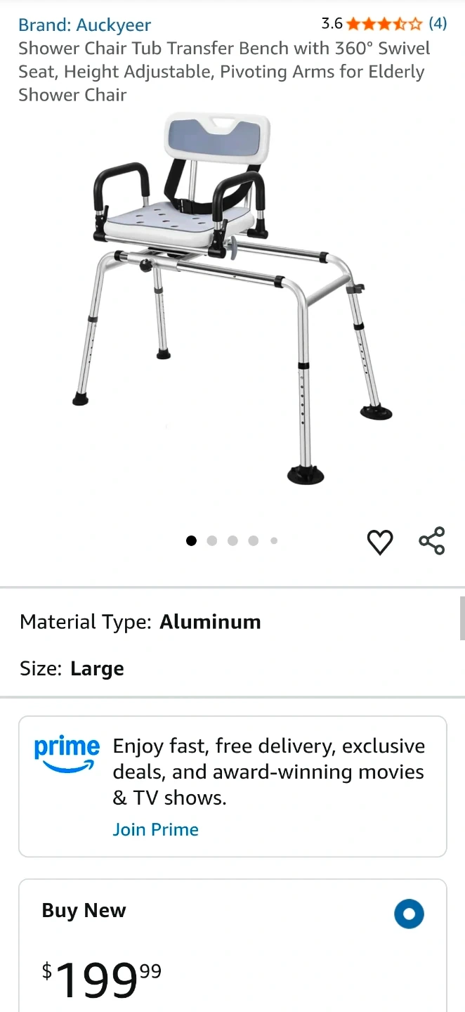 This Auckyeer shower chair tub transfer bench features a 360° swivel seat and height adjustable, pivoting arms, designed for elderly individuals.