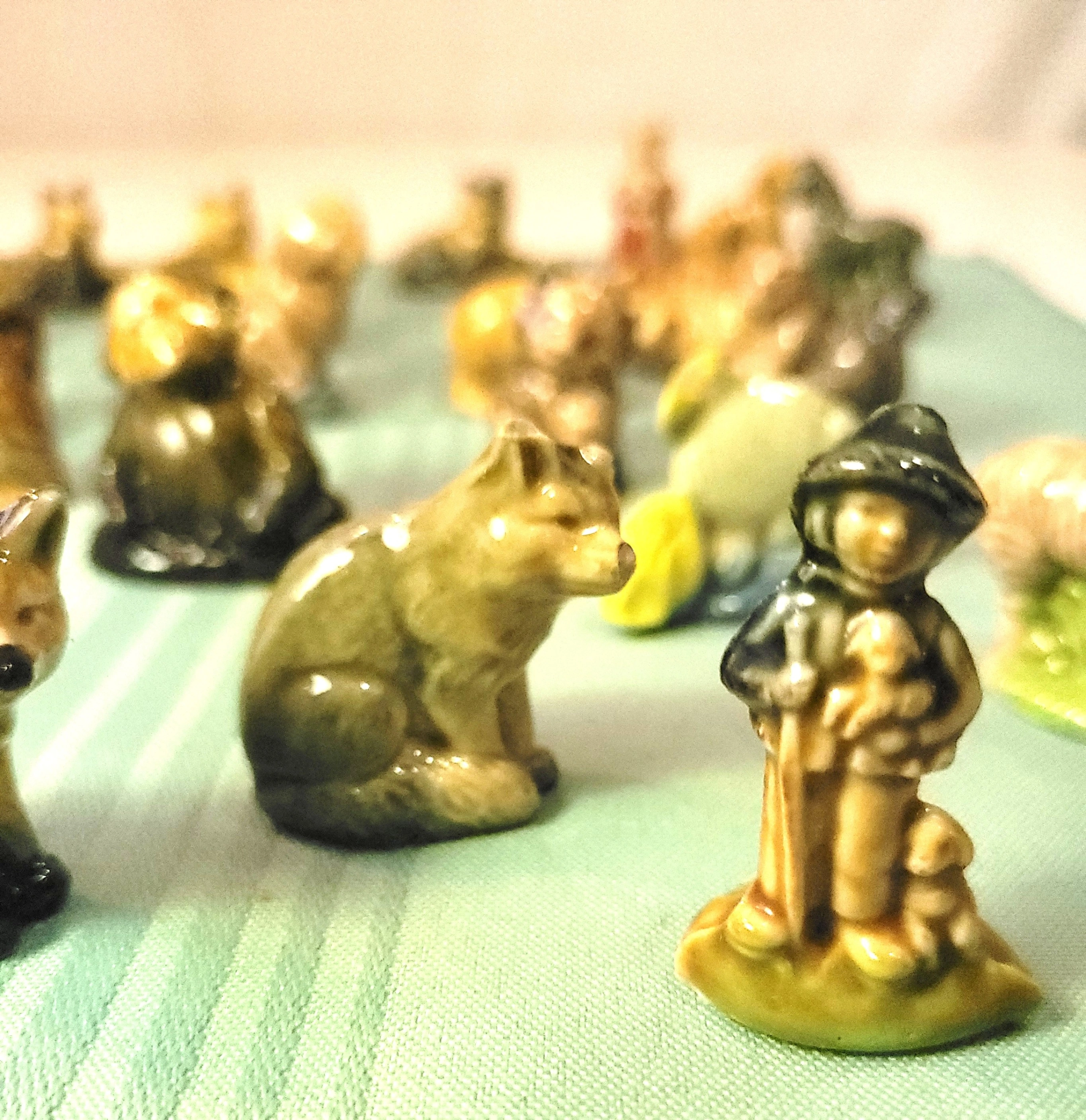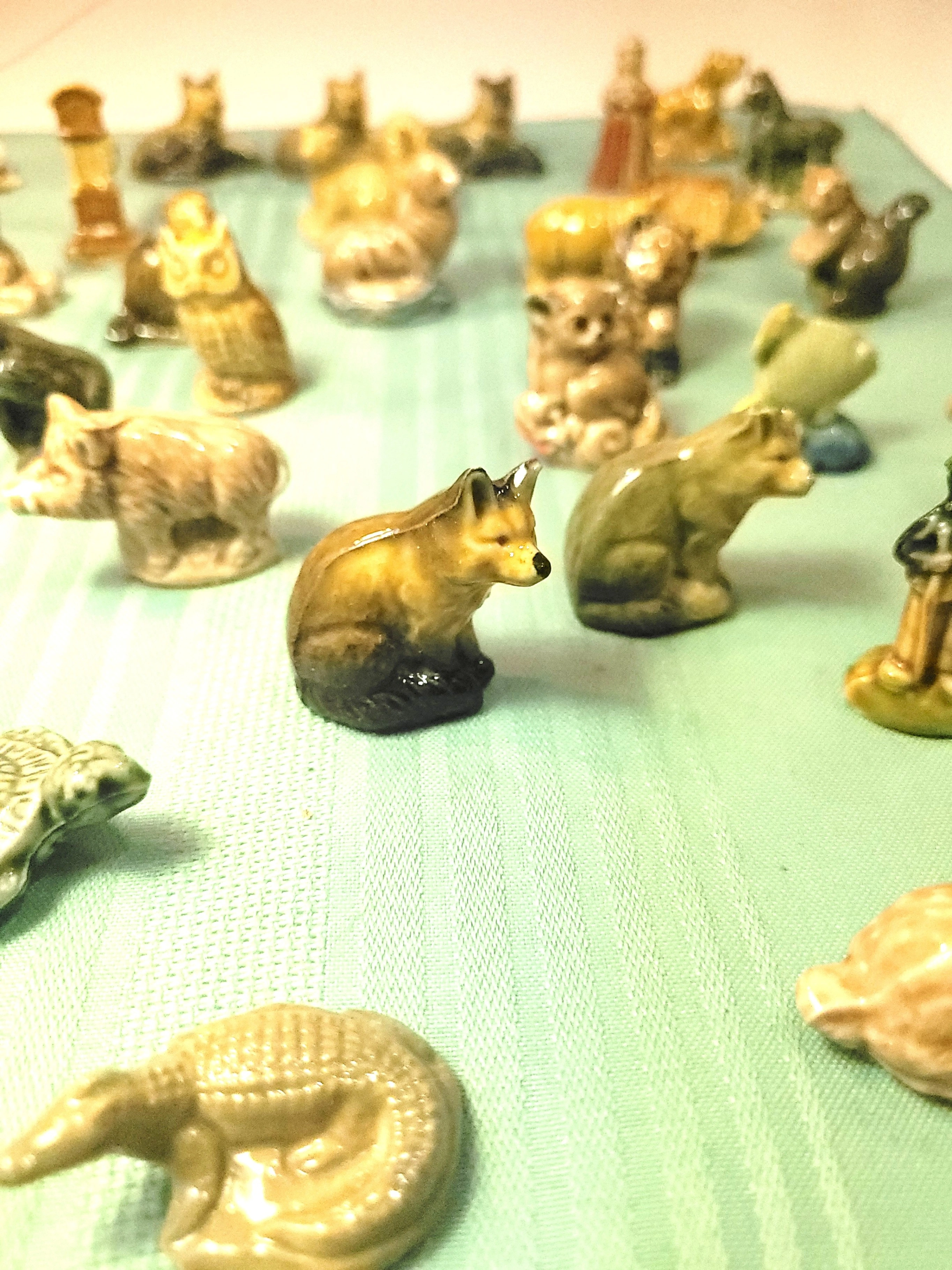 Condition: The pieces are in good vintage condition with a vibrant, glossy glaze. Please note that as indicated in the photos, three or four of the figurines have minor chips on the ears or heads. The remaining 37+ pieces are in great shape. Please refer to the photos for a detailed look at the variety and specific condition of each miniature.