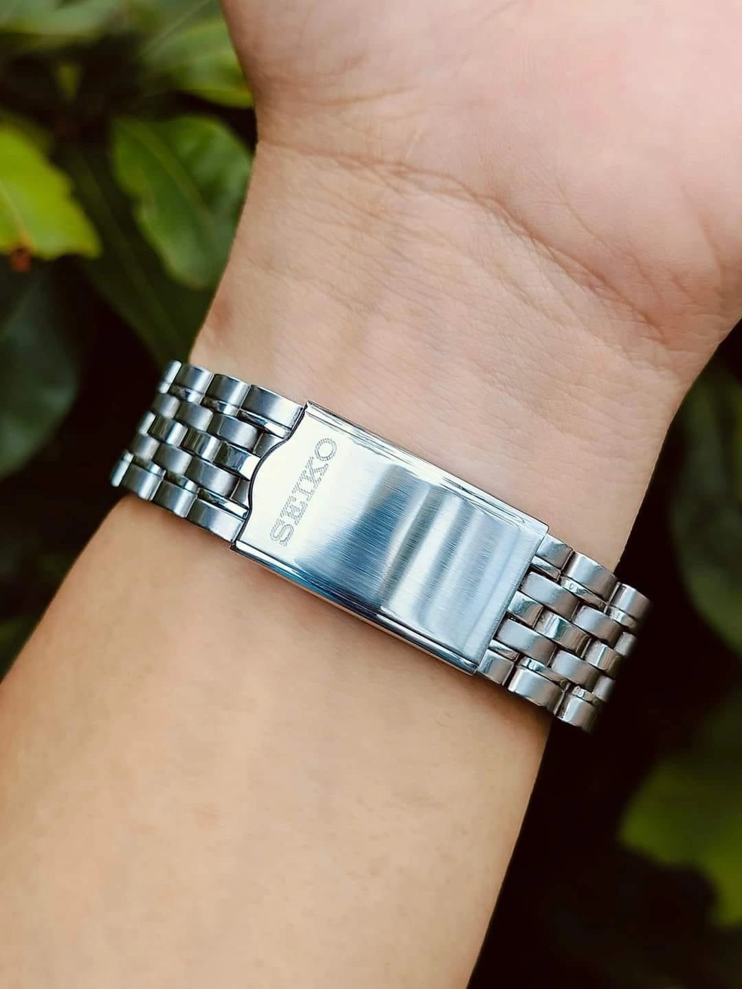 A vintage Seiko watch with a silver dial and a silver bracelet. The watch is in good condition and is a great addition to any collection. The watch is automatic and has a date function.