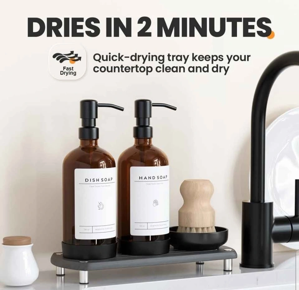 Quick sale! Luxury Quick dry Tray+ 2 glass bottle dispensers