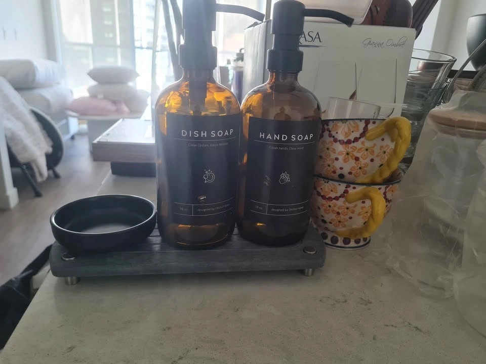 Pickup downtown near Victoria park. Moving sale. Makes your kitchen area looks great. 2 bottles with pumps (1 for dish soap and the other for hand soap). 4 items are included only, not the brush since it's been used.