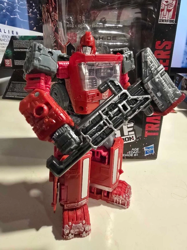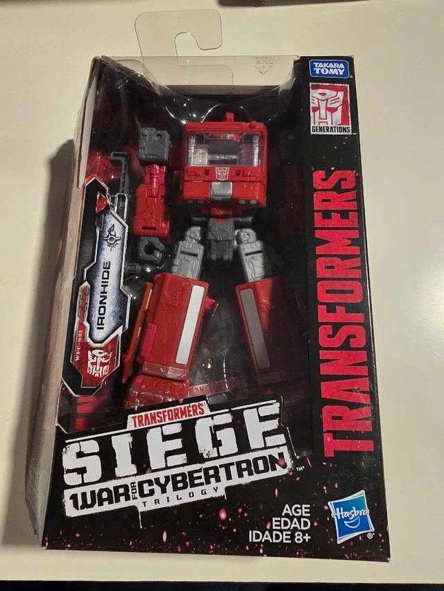 This is a used Takara Tomy Transformers Generations Ironhide action figure from the Siege War for Cybertron Trilogy. It's a Deluxe Class figure, suitable for ages 8 and up. The figure is in excellent condition with tight joints and no visible wear. Based on comparable listings, I'm pricing this at $45. If the ad is still up, it's still available.