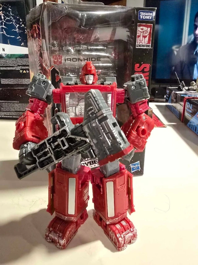 This is a used Takara Tomy Transformers Generations Ironhide action figure from the Siege War for Cybertron Trilogy. It's a Deluxe Class figure, suitable for ages 8 and up. The figure is in excellent condition with tight joints and no visible wear. Based on comparable listings, I'm pricing this at $45. If the ad is still up, it's still available.