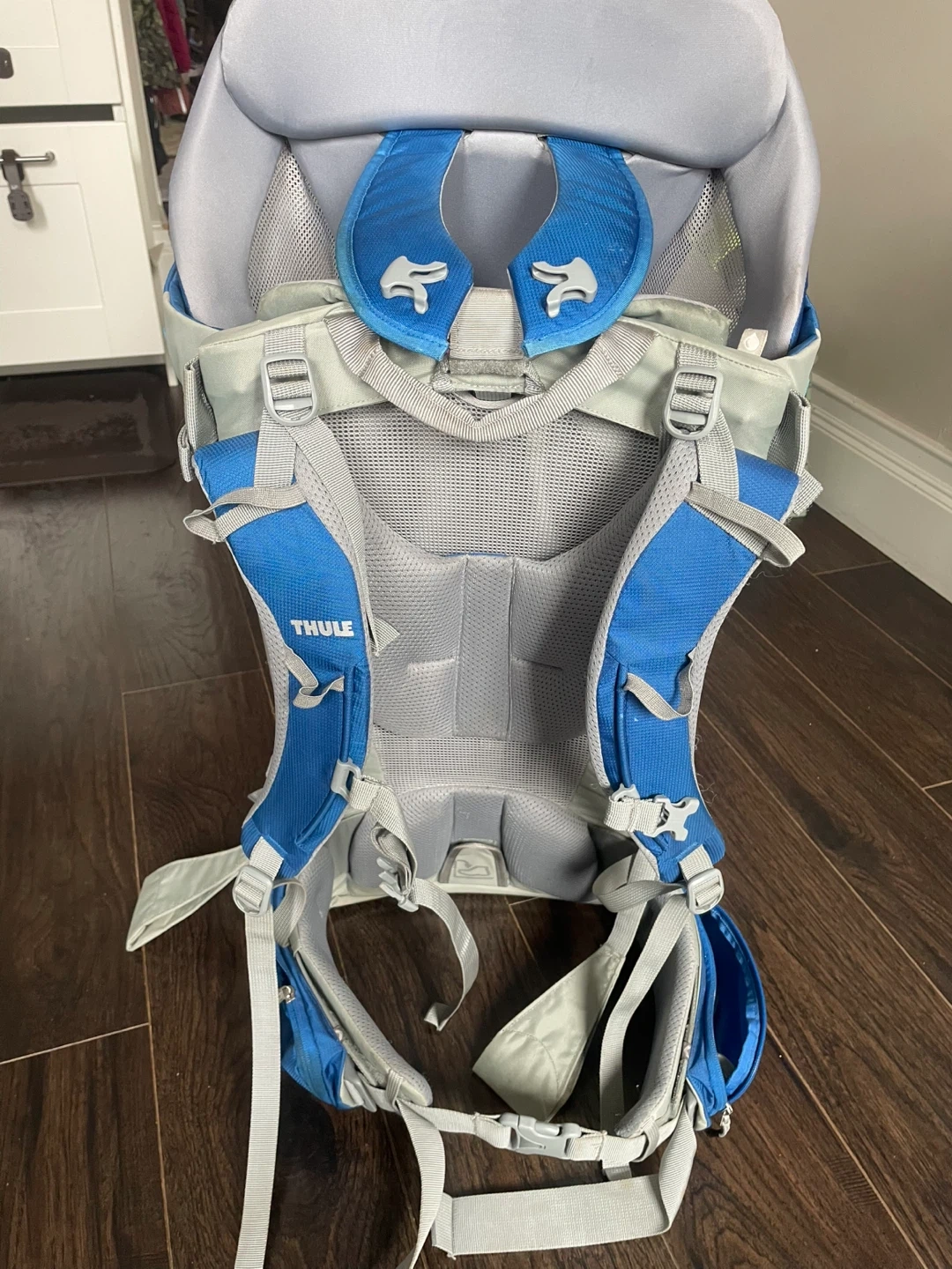 This Thule Sapling child carrier is designed for comfortable outdoor adventures. It features adjustable straps for a custom fit. Includes original instructions for easy setup. Perfect for parents on the go! Cosmetic issues only- see discolouration of meshing, some light staining on inside/top, small markings. Fully functional, all straps/zippers in good condition.