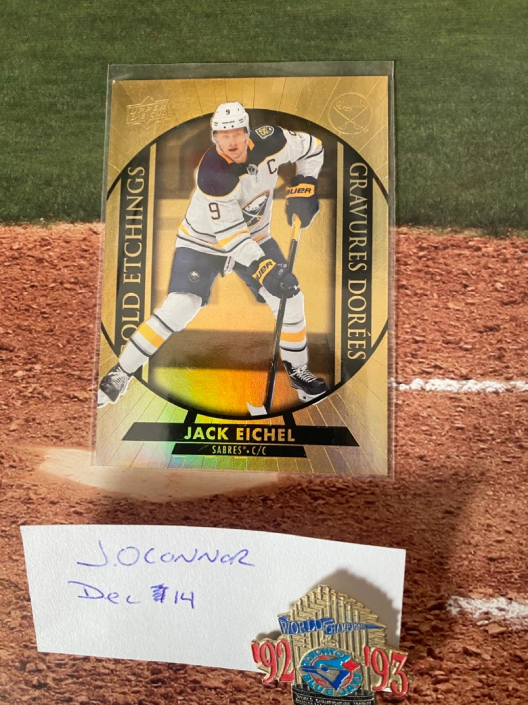 Selling a collection of Upper Deck NHL hockey cards. Includes players like Jack Eichel, Brady Tkachuk, Mitch Marner, Johnny Gaudreau, and Connor Hellebuyck
