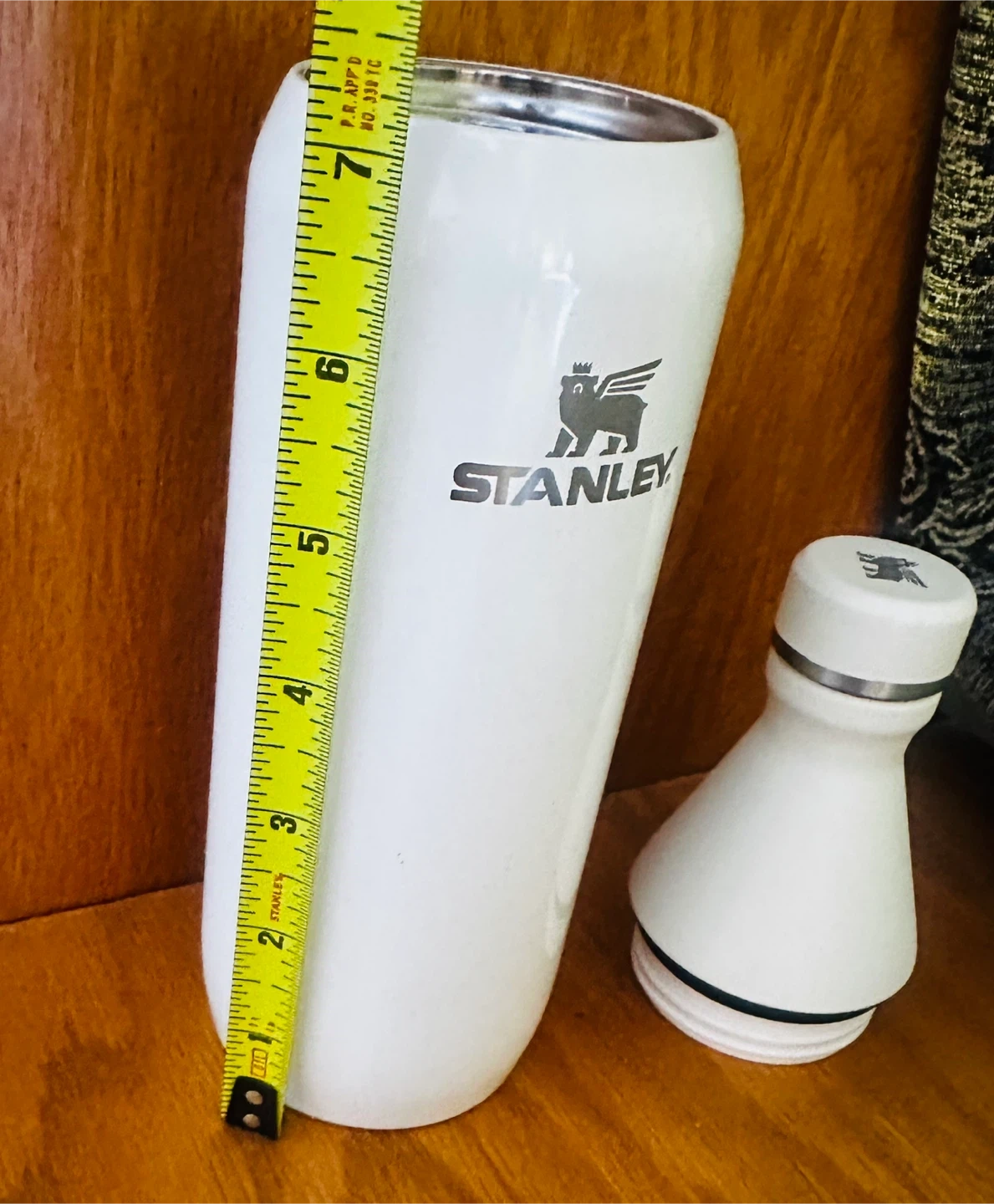 Stanley insulated bottle. Holds 20 oz / 591 mL. Dishwasher safe. BPA free. Not for carbonated beverages. Designed in Seattle, WA.