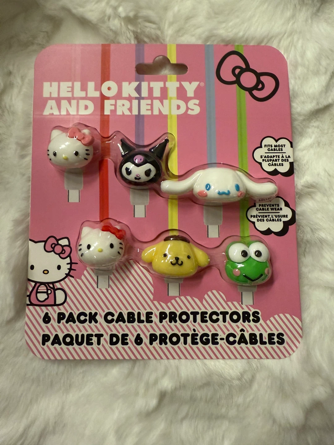 Keep your charging cables safe and stylish with this Hello Kitty and Friends 6-pack of cable protectors! These adorable protectors feature Hello Kitty, Kuromi, Cinnamoroll, Pompompurin, and Keroppi. They fit most cables and prevent cable wear and tear