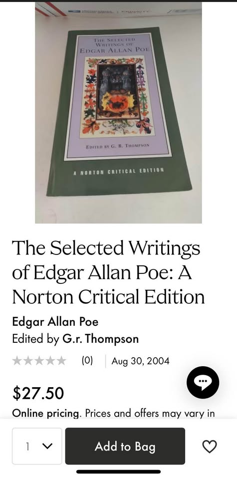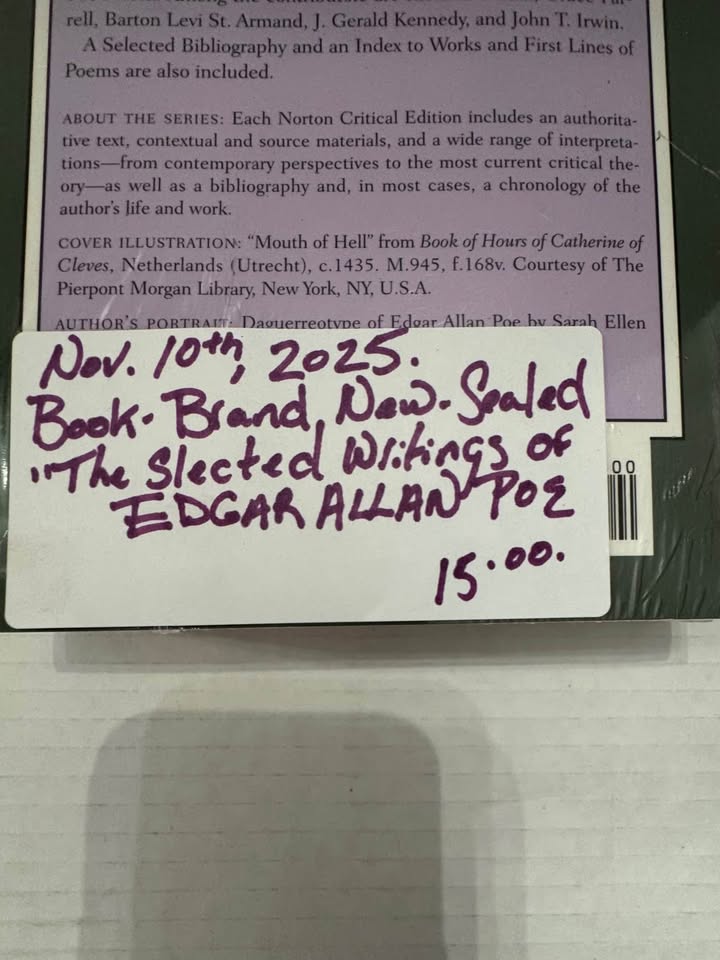 Brand new, sealed copy of "The Selected Writings of EDGAR ALLEN POE." 1,024 pages.