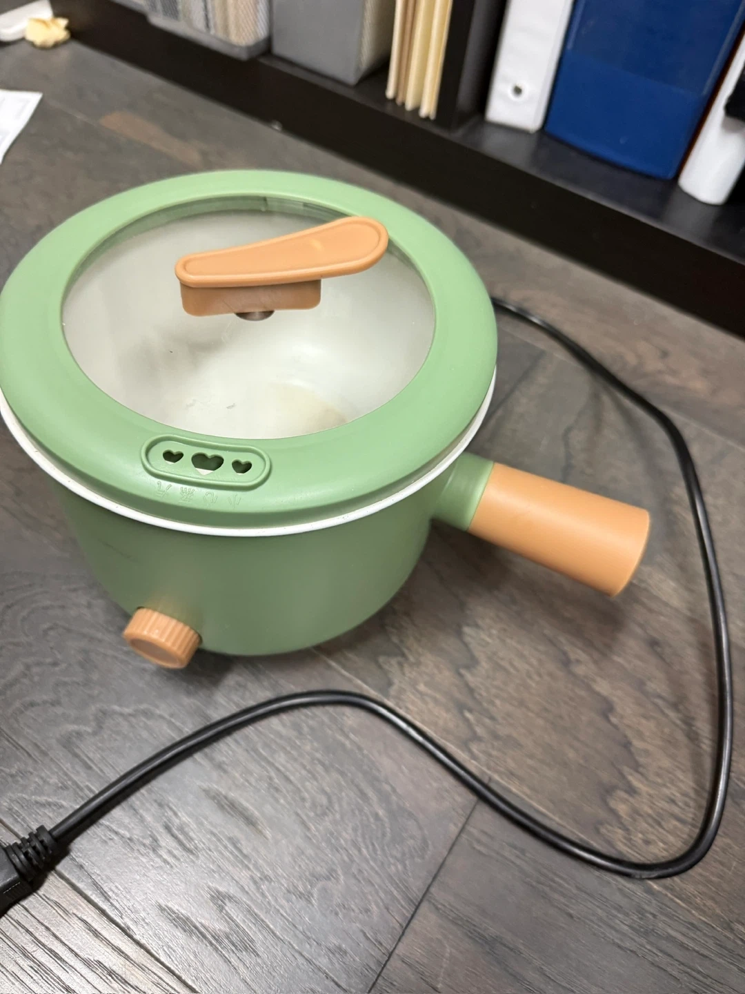 This electric mini pot is handy for cooking small meals. It features a non-stick interior and comes with a glass lid. It's a convenient size for dorm rooms or small kitchens!