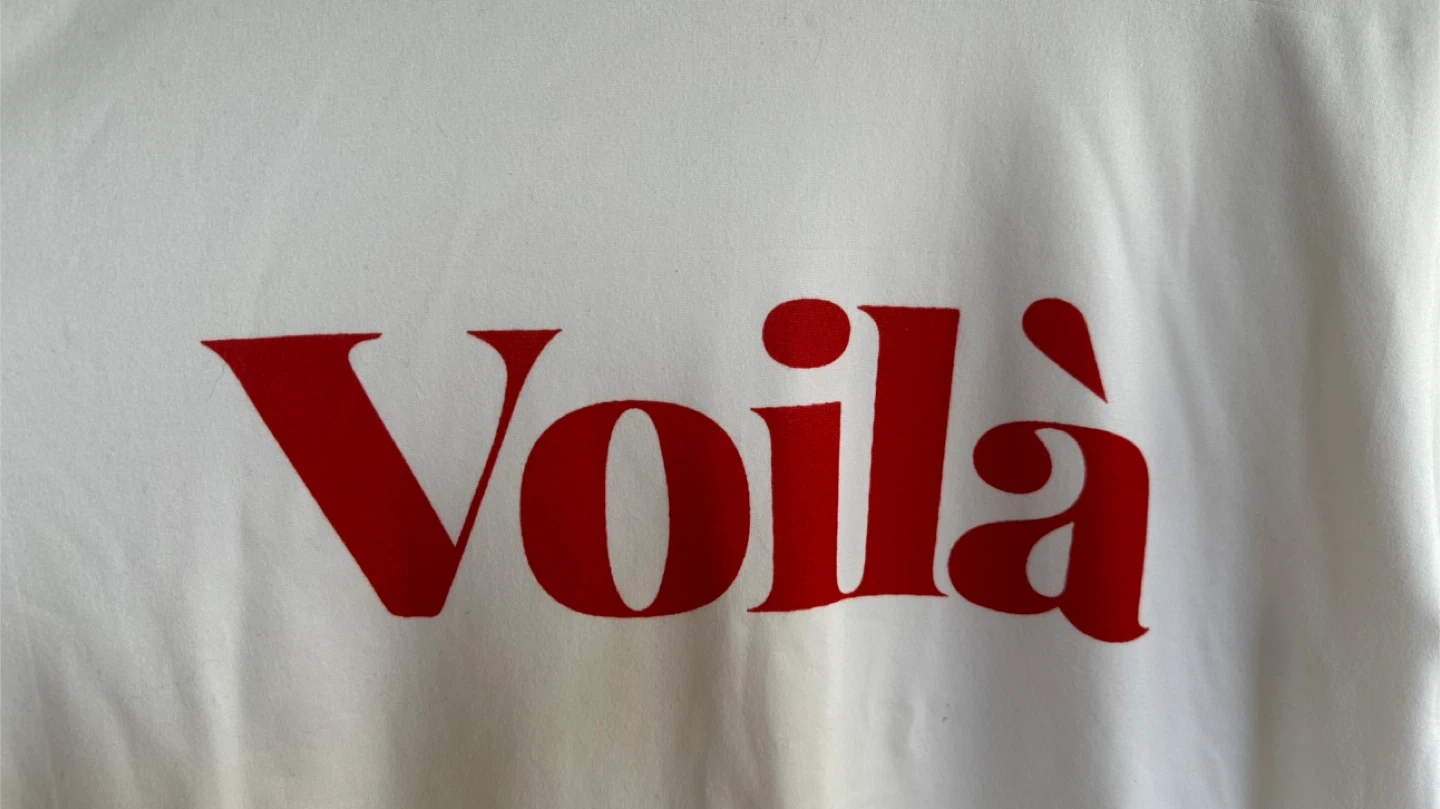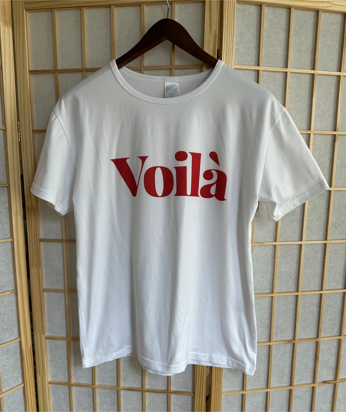 This is a white t-shirt with a red "Voilà" graphic. Brand new, never worn.
