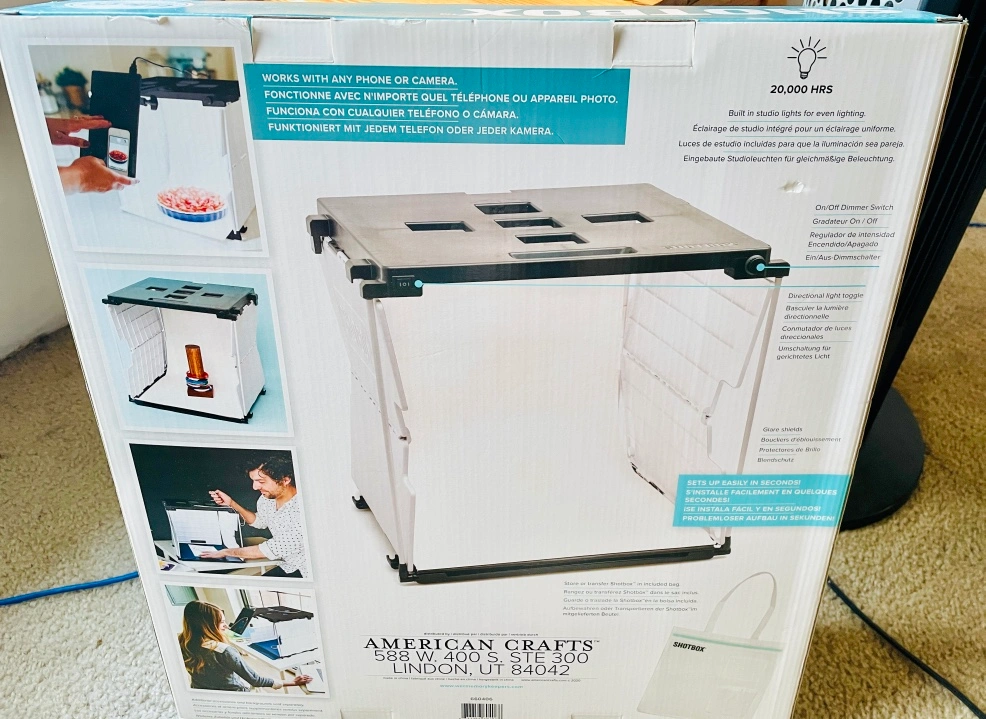 A recent life event has me feeling blessed so would like to pay it forward and gift this portable photo studio to novice photographers, crafters and creators. It features built-in studio lights for even coverage, an on/off dimmer switch, glare shields to keep images clean, and a collapsible frame for easy set up, take down, and storage. This package includes 1 portable photo studio, 1 storage bag, 2 infinity backdrop (1 in black and 1 in white).