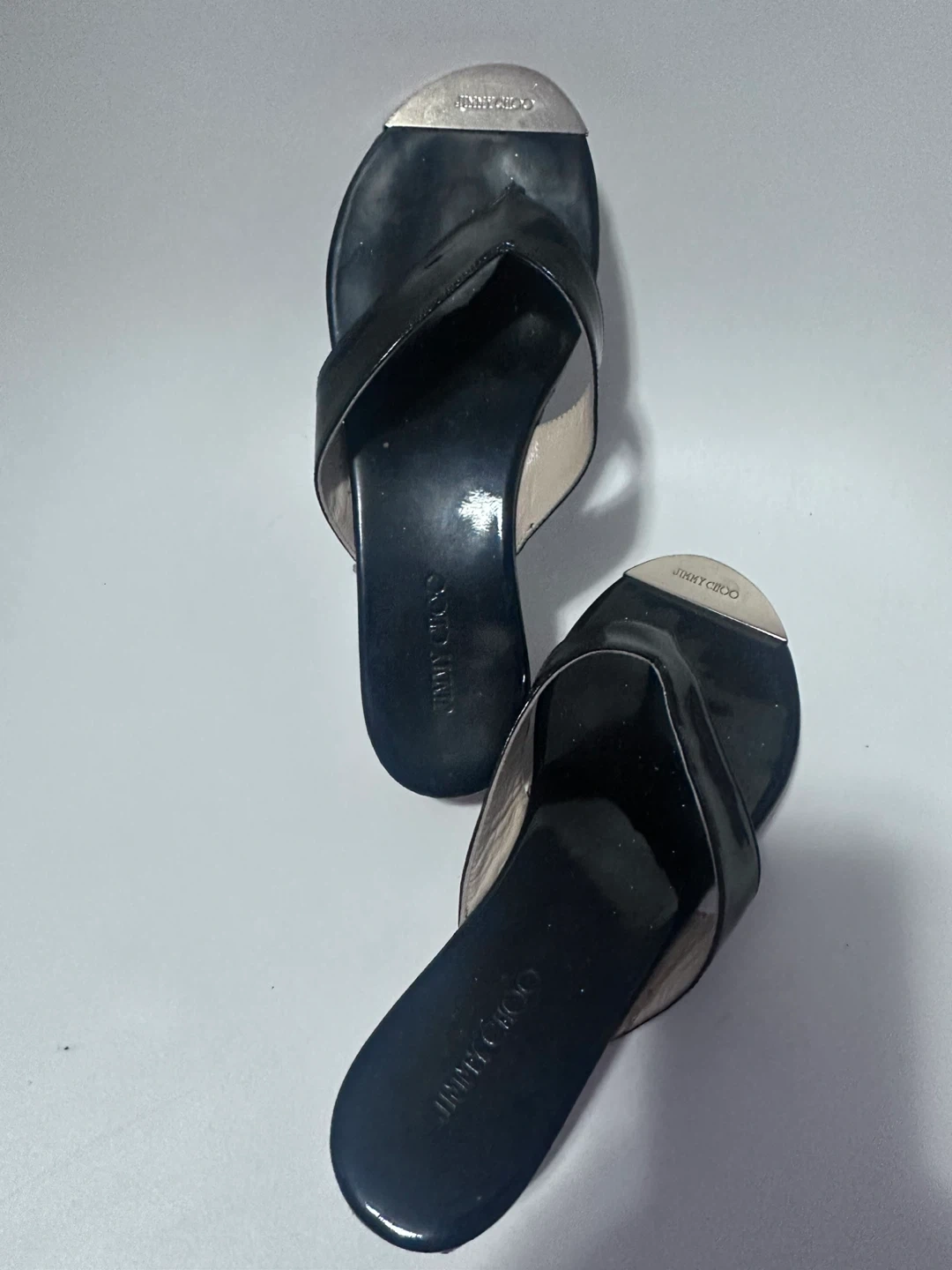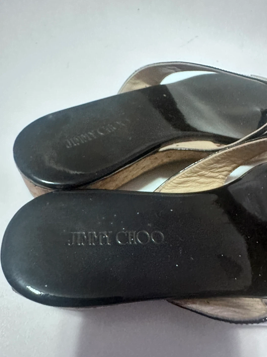 Selling a pair of Jimmy Choo black thong wedge sandals. They are in good condition and feature a stylish wedge heel. Perfect for adding a touch of elegance to your summer outfits!