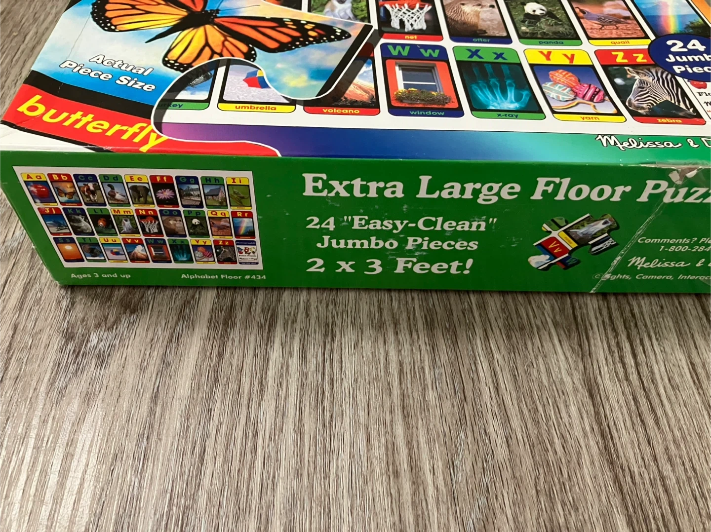 Looking to sell this Melissa & Doug Alphabet Floor Puzzle! It features extra-large, easy-clean jumbo pieces. The puzzle measures 2 x 3 feet when assembled. Comes with 24 pieces and is great for ages 3 and up!
