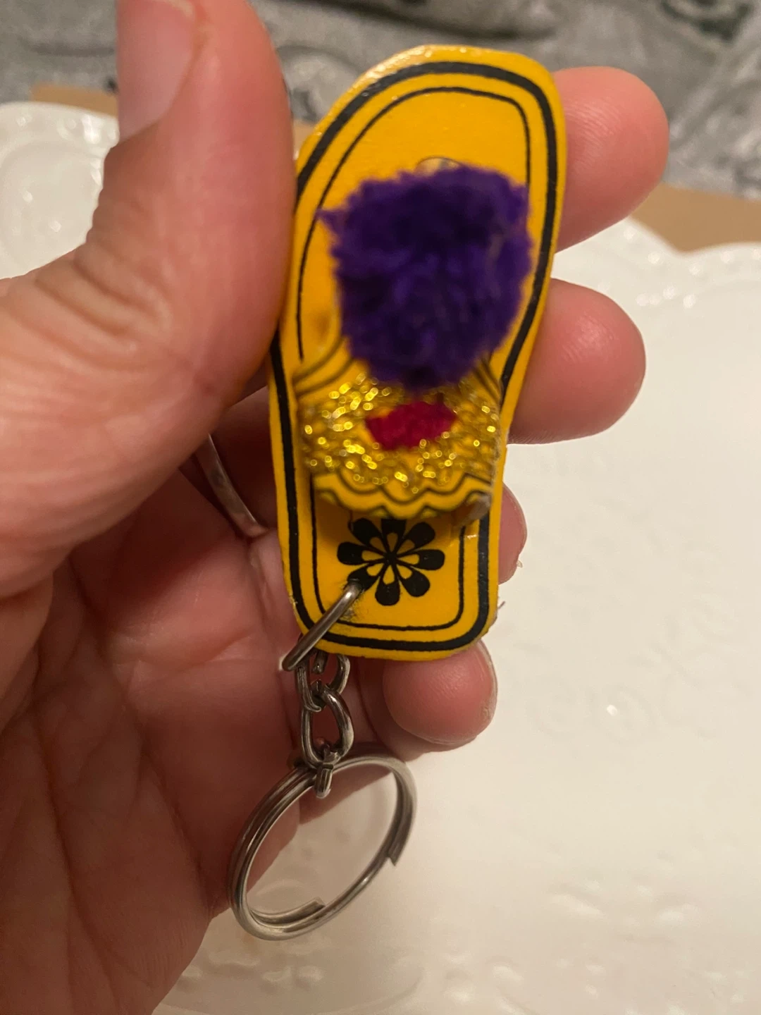 New ( unused) Ethnic Flip Flop Keychain with pom-pom