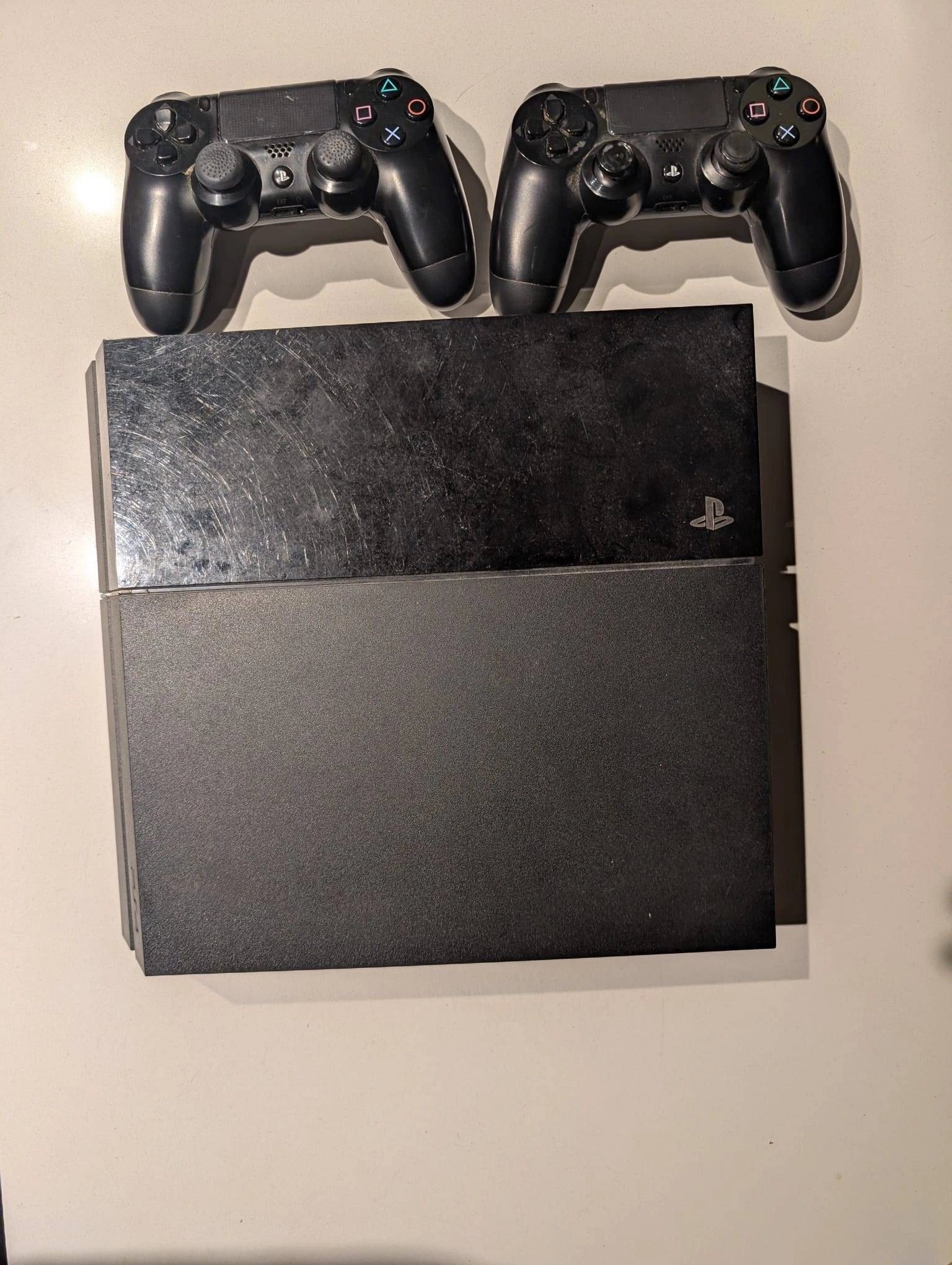 Selling my original PlayStation 4 in good condition. The console works perfectly and has been well cared for. Includes: •⁠ ⁠PS4 console •⁠ ⁠2 wireless controllers •⁠ ⁠Power cable, HDMI cable and controller charging cable One controller has some joystick wear from normal use, but both controllers work fully and are playable. Great starter console, second system, or gift. Pickup only. Cash preferred. Price: $90