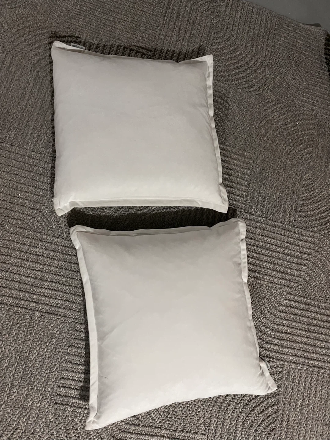 Selling two plain white throw pillows. They're in good condition and ready to add some comfort to your couch or bed. Covers are removable.