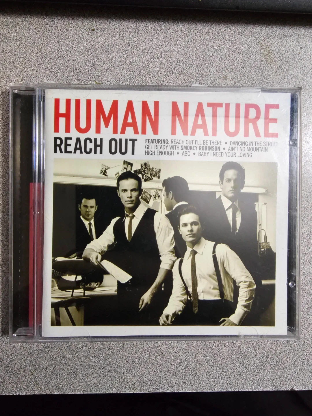 Human Nature's 'Reach Out' CD includes tracks like "Reach Out I'll Be There" and "Get Ready" featuring Smokey Robinson. Also features a bonus track with Mary Wilson of The Supremes. Sony Music release.