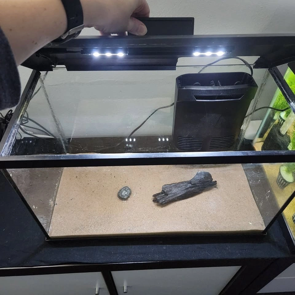 Hi there, I have a 10-gallon tank available for pickup. It was just emptied today, March 14th. No leaks, tight seals, and no glass chips. There are a few surface scratches that will barely be noticeable when filled with water. It also comes with a lid with a working light, Marina internal filter, aquarium sand, a piece of driftwood, an almost full bottle of water conditioner, flake fish food, and almond leaves. Pickup is at Greenwood and Danforth, right beside the gas station in East York, Toronto. All sales are final. No holds without a deposit!