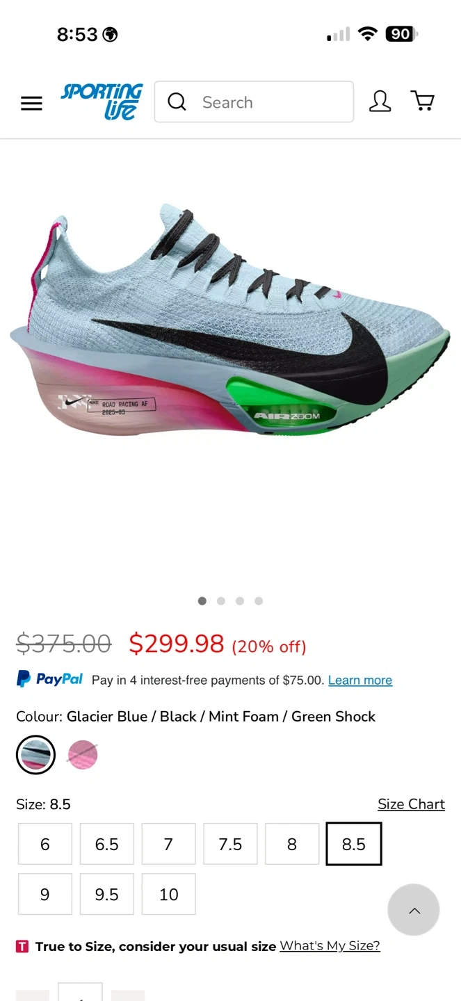 Brand new Nike Women’s Air Zoom Alphafly NEXT% 3 – size 8.5. Bought from Nike Canada. (Retail $375)