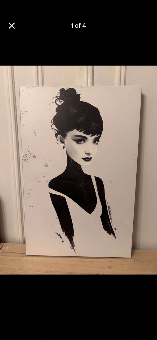 This canvas print features the "Oh, Audrey" artwork by Ruben Ireland. It's a framed canvas, measuring 20 x 30 inches. It's ready to hang on your wall!