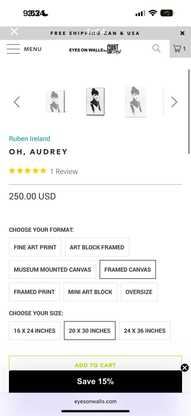 Eyes on Walls "Oh, Audrey" Canvas Print