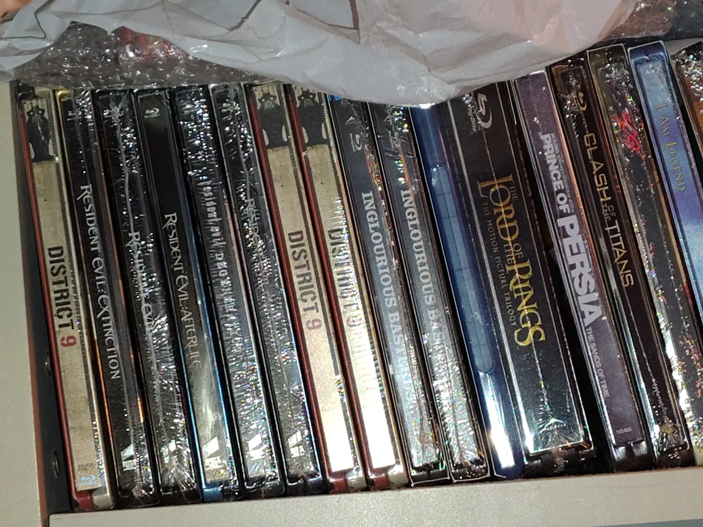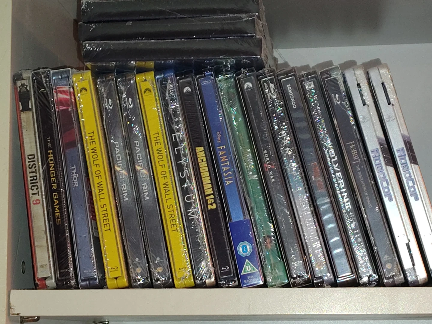 Collection of Blu-ray steelbook movies including titles like District 9, Thor, and The Hunger Games. All brand new, sealed condition. Great for movie collectors!