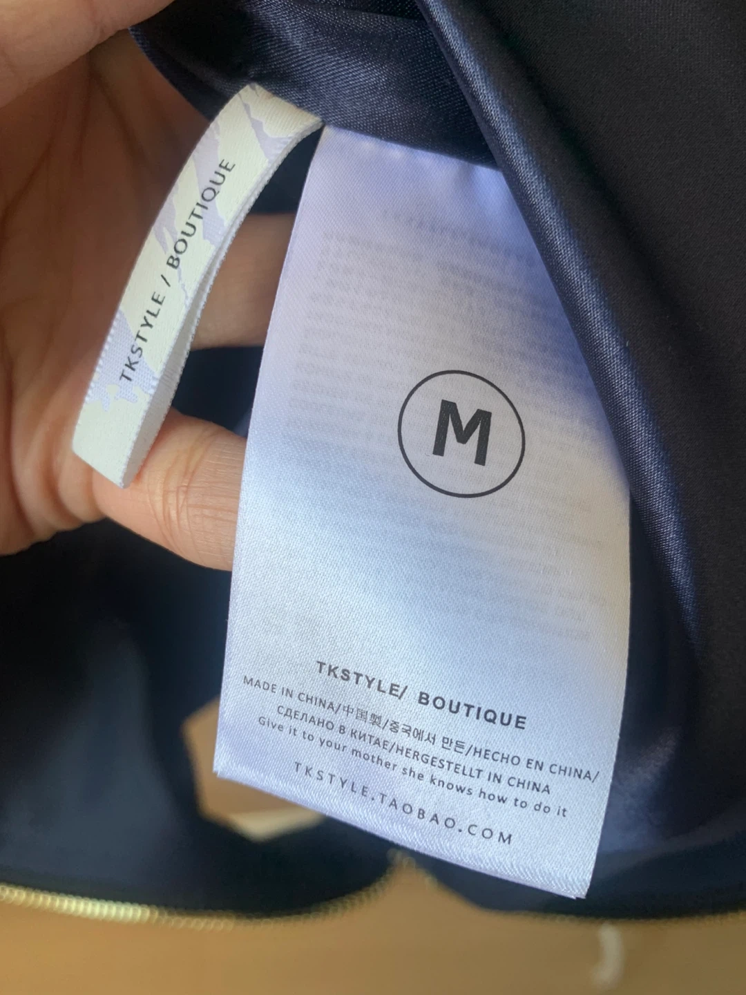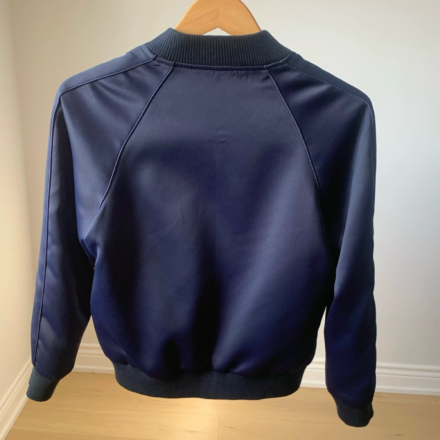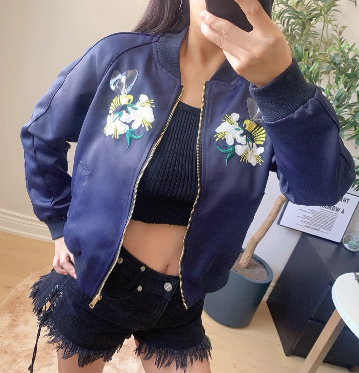 Navy Satin Bomber Jacket with Bee Embroidery – Size M