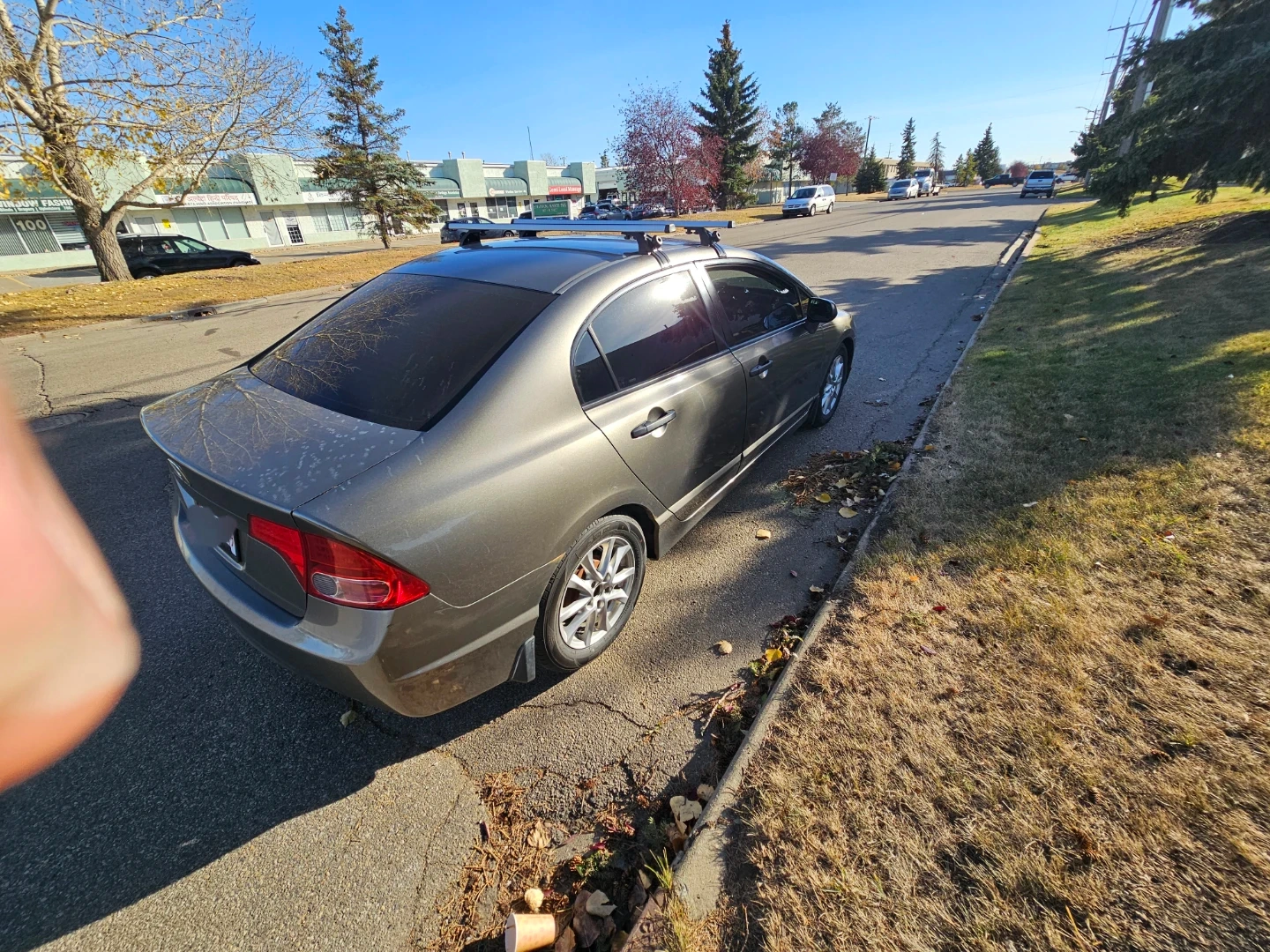 A pre-owned Honda Civic sedan, grey in colour, is up for grabs! It comes equipped with a roof rack for extra cargo space. This model features tinted windows. It's a reliable ride, perfect for daily commutes and weekend adventures. A great option for anyone needing dependable transportation!