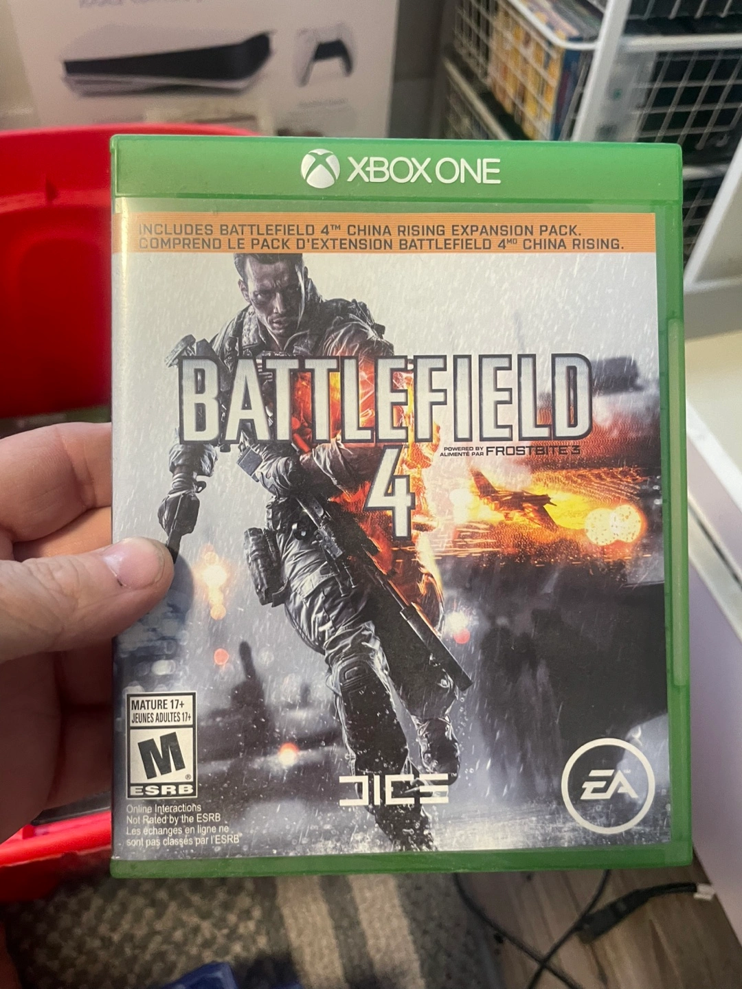 Xbox One console, controller, Kinect sensor, headset, power cord, and HDMI cable. Includes five games: Battlefield 4, Tom Clancy's Rainbow Six Siege, Forza Horizon 6, State of Decay, and Project Cars also have a racing wheel