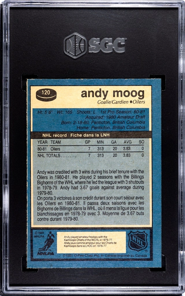 1981-82 O-PEE-CHEE OPC - Andy Moog (R) - #120 - SGC 7.5